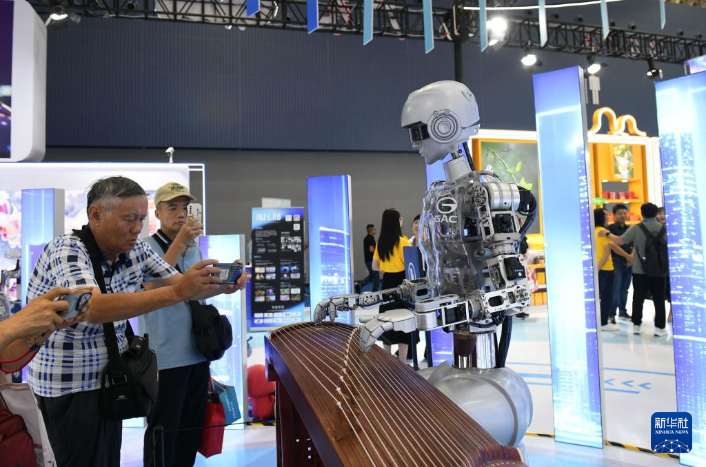 9月12日,在2025廣東國際旅游產業博覽會現場,智能機器人彈奏古箏。新華社發(許建梅攝)
